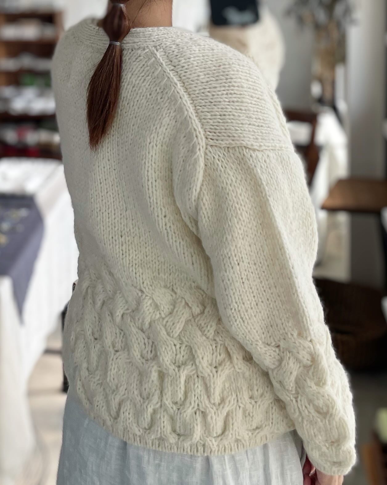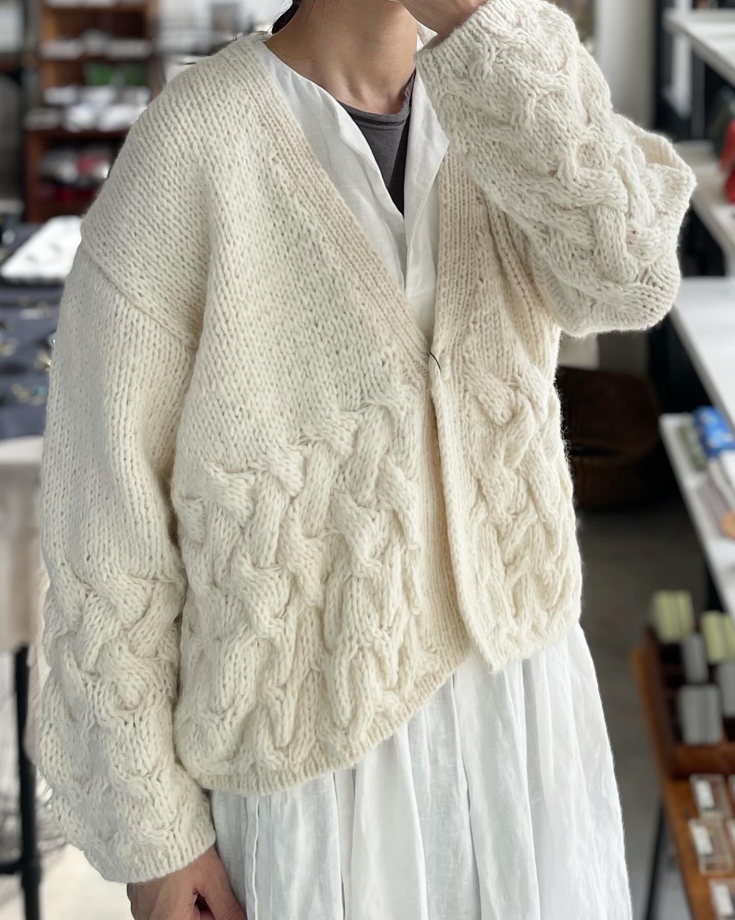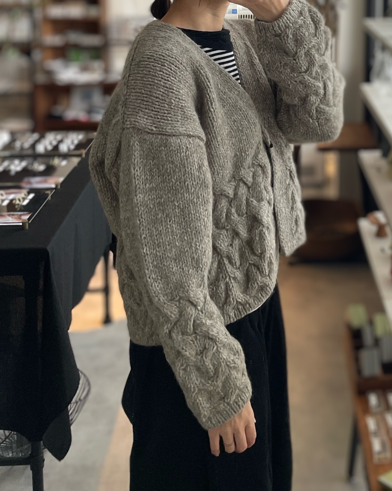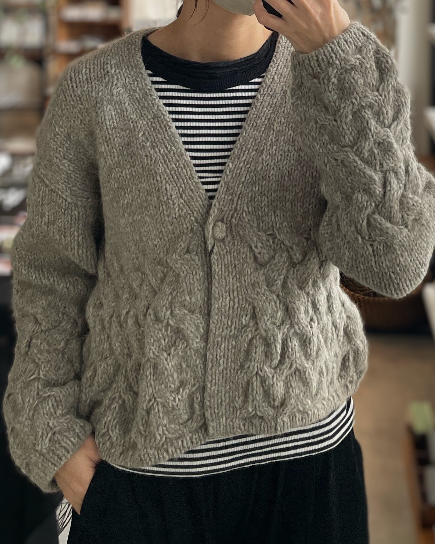 腰回りと袖の編み地がポイントで、柔らかく軽いのに、保温性抜群のカーディガン。