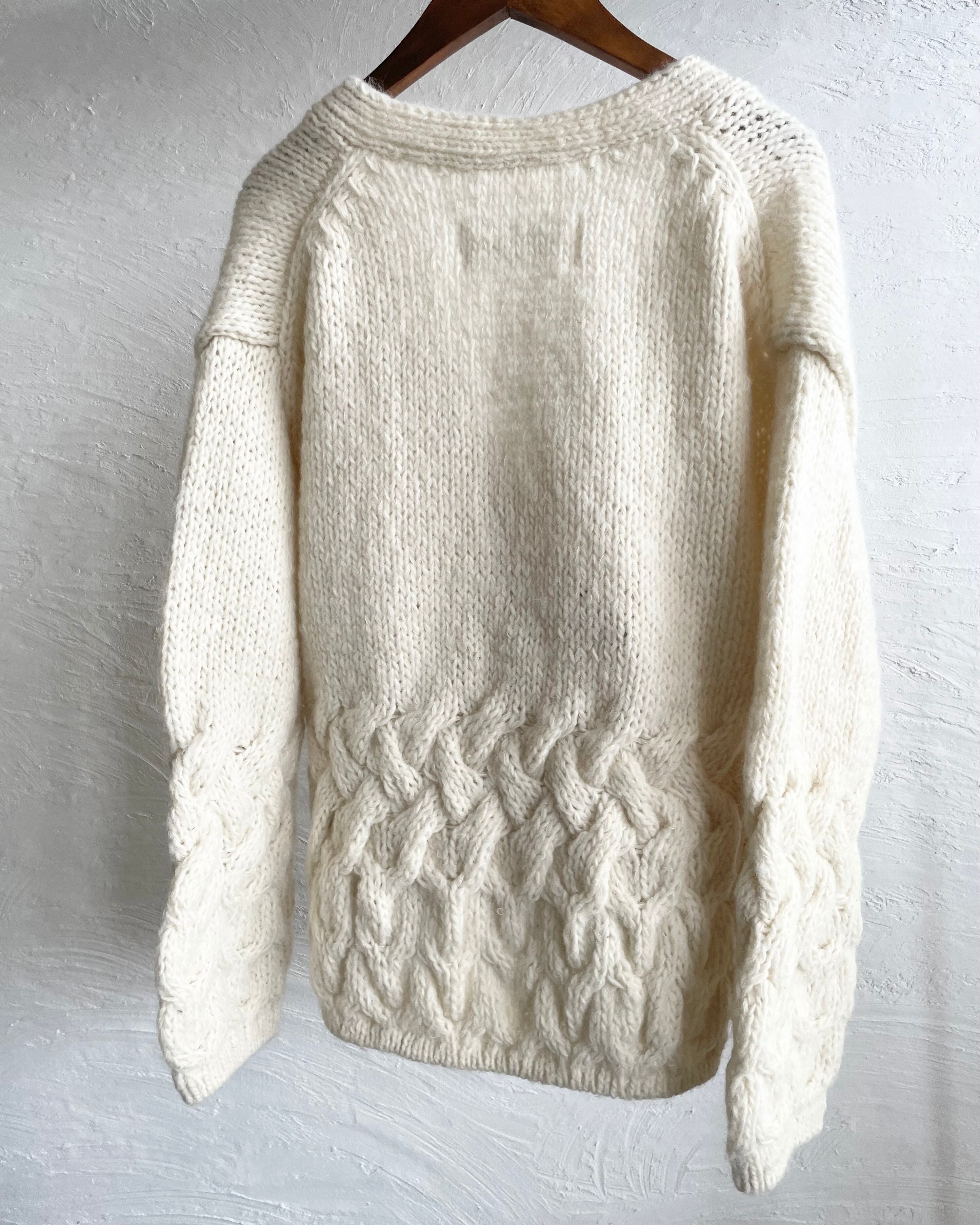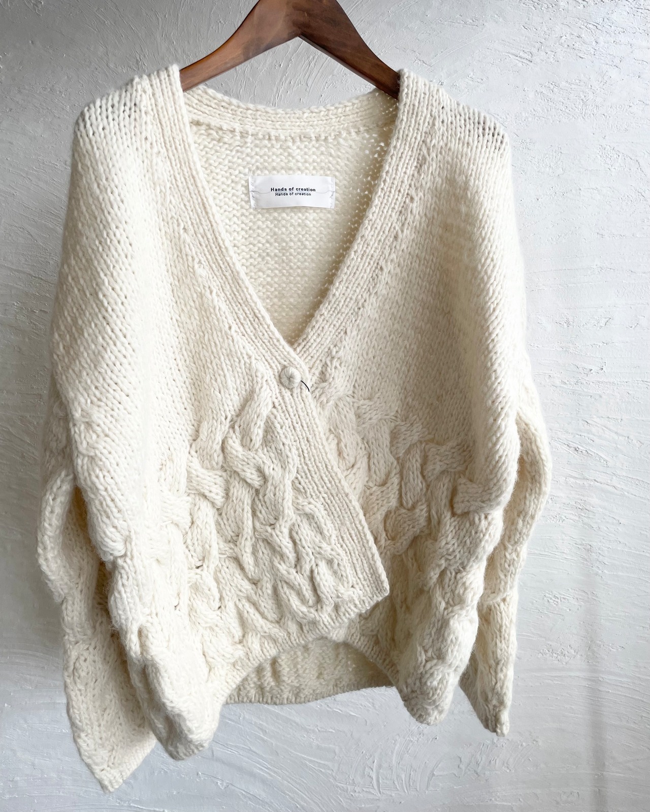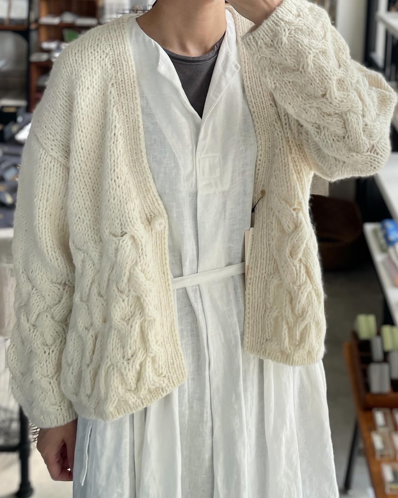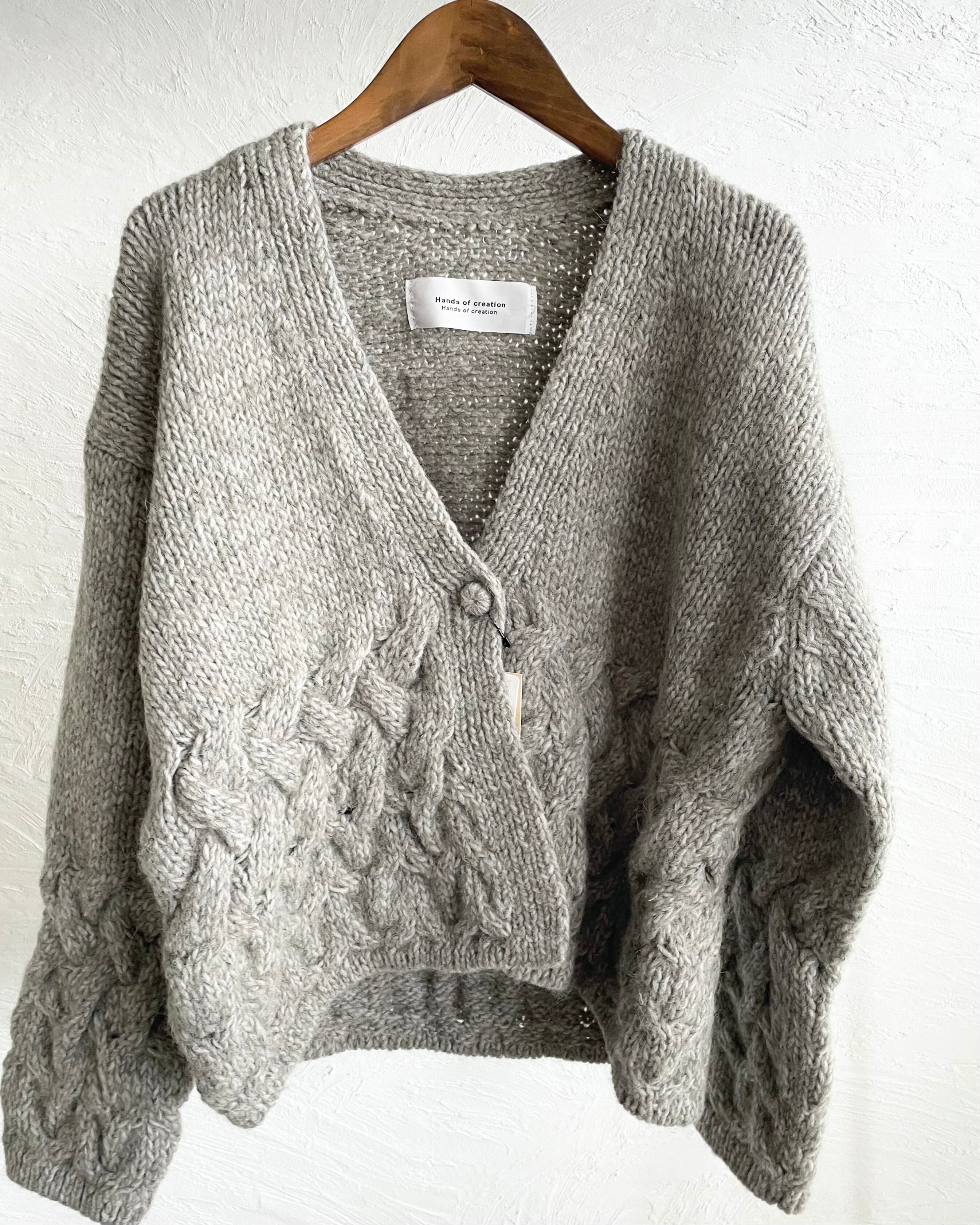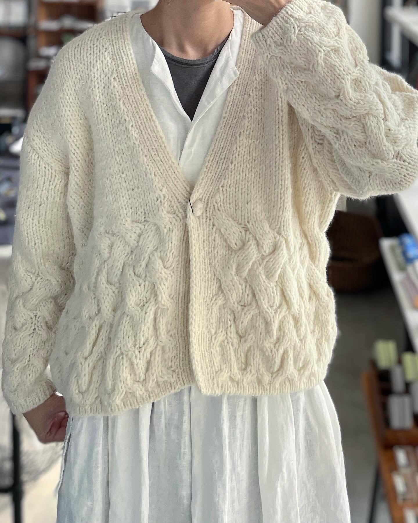 腰回りと袖の編み地がポイントで、柔らかく軽いのに、保温性抜群のカーディガン。