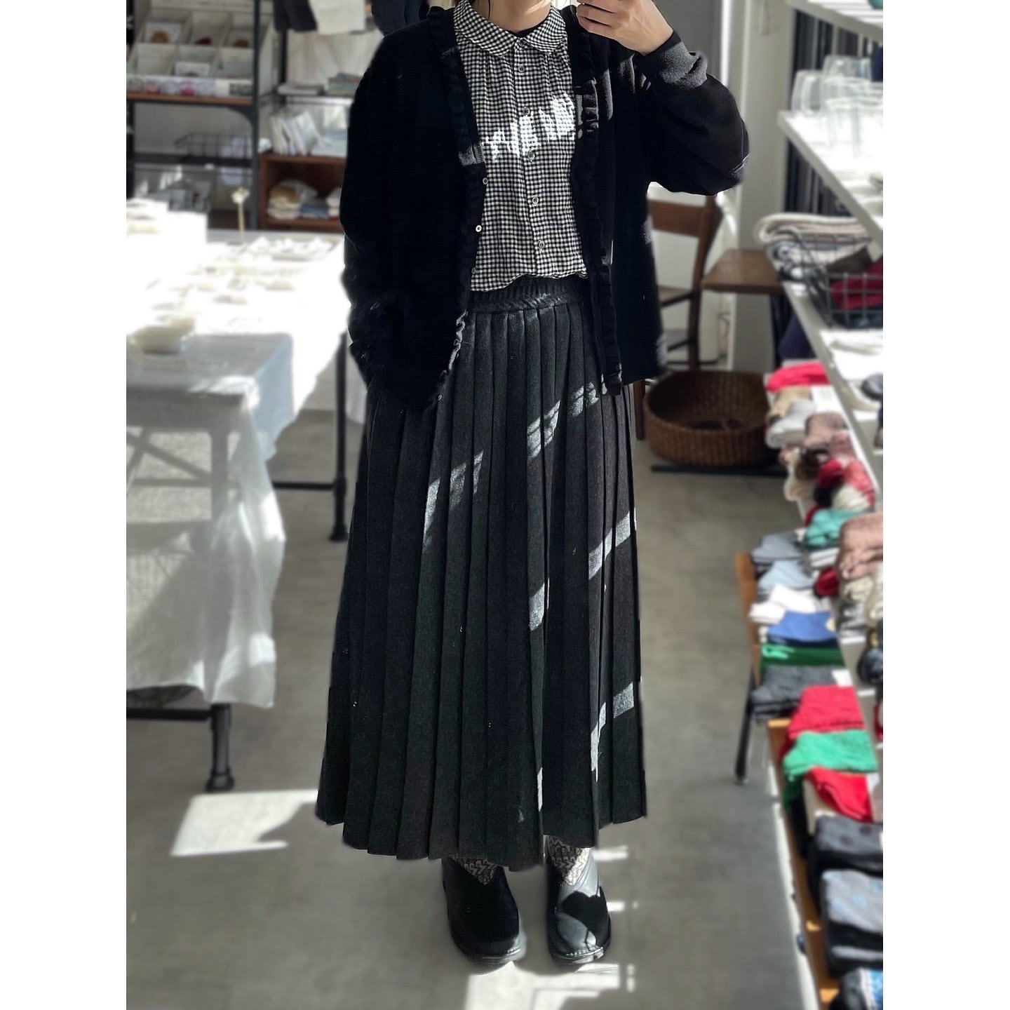 LinenYaのウールプリーツスカート。